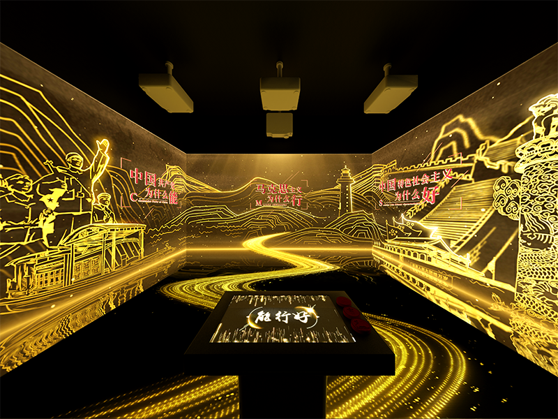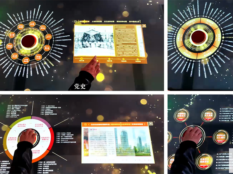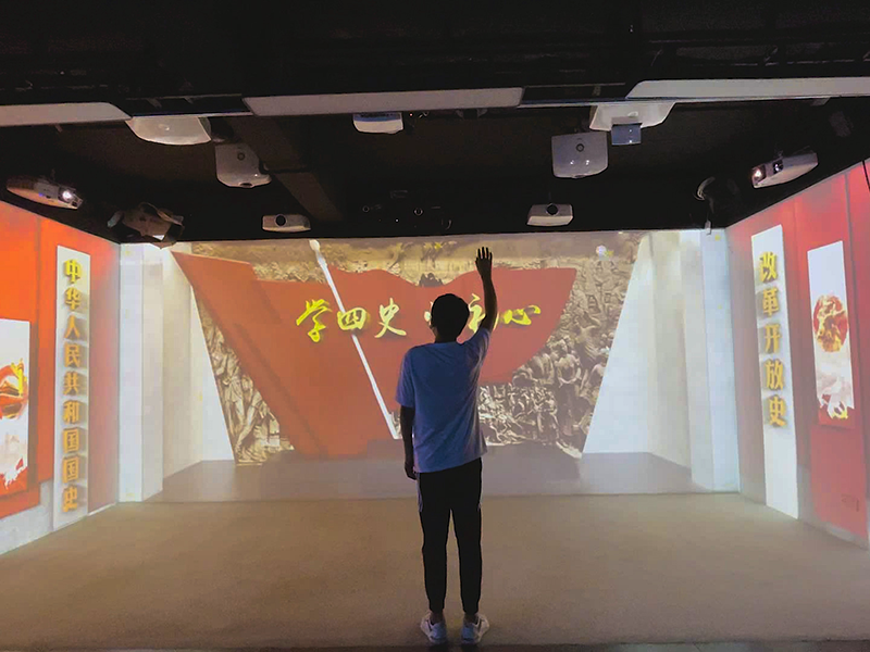 “学四史、忆初心”空间体感互动系统是一套具有完全知识产权的新一代软件系统,该系统是在深入调研市场需求的基础上,针对党建领域开发而成的一套操作使用系统;系统内容上