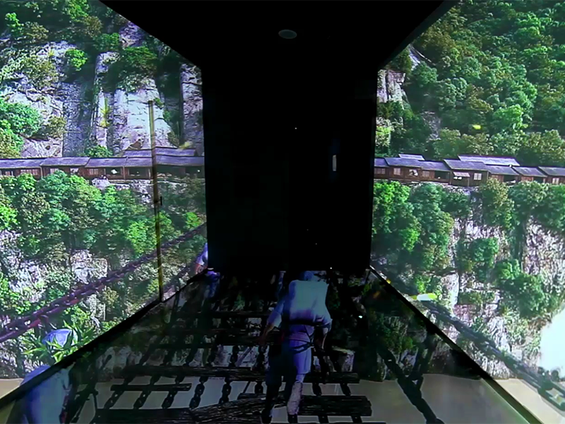 “重走长征路”沉浸式裸眼3d投影,以多通道投影技术和立体成像技术为核心,将动态立体的三维影像投射到房间的四面(或六面),再结合环绕式音响系统和动作采集系统,创造
