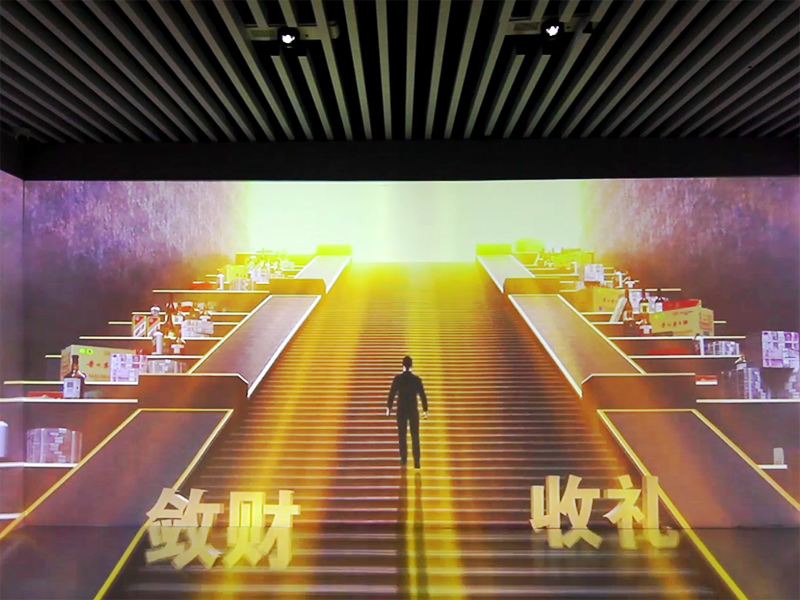 “廉洁人生八大关”cave(沉浸式投影),是基于投影技术的沉浸式虚拟现实显示系统,其特点是分辨率高,沉浸感强,交互性好。它以计算机图形学为基础,把立体投影显示技