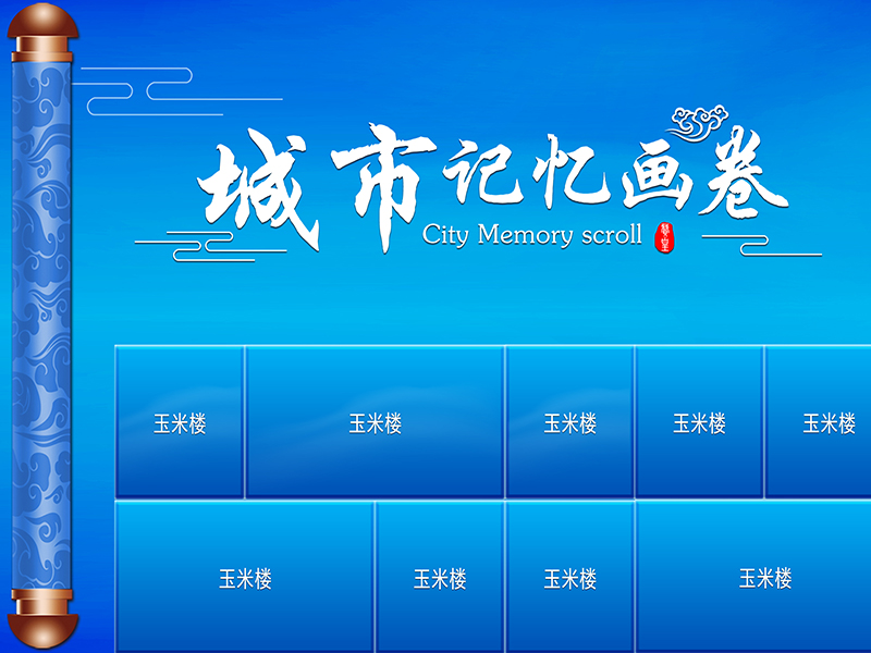 “城市画卷”是一个综合类的展项。该展项包含一个区域的文化介绍,风景名胜,特色食品或水果,甚至是地方建设成就等一系列综合信息,通过在大型的拼接屏展示可以用柜台形式