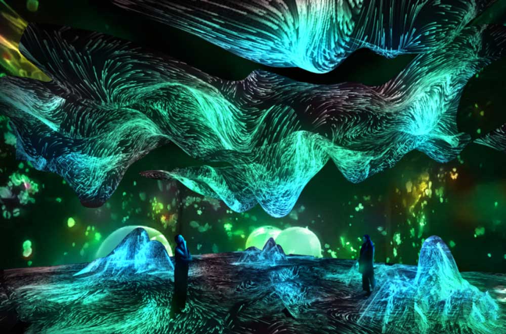 运用沉浸式投影系统、VR虚拟现实等技术,强化了场景的空间维度、社交维度和体验维度。